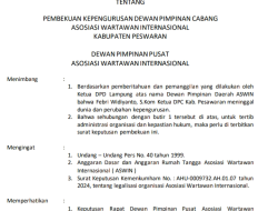 Pesawaran, LampungSai.com,-Febriyansah resmi ditetapkan sebagai Ketua Dewan Pimpinan Cabang (DPC) Asosiasi Wartawan Internasional (ASWIN) Kabupaten Pesawaran.